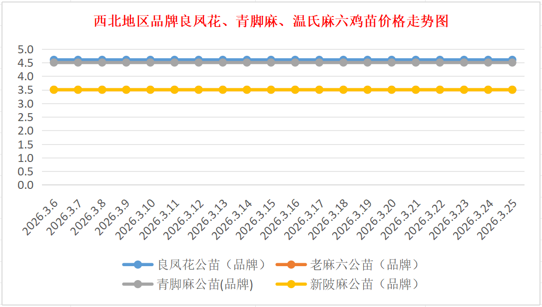 品牌新陂麻:价格稳定,到户价公苗4.50元/羽,稳。