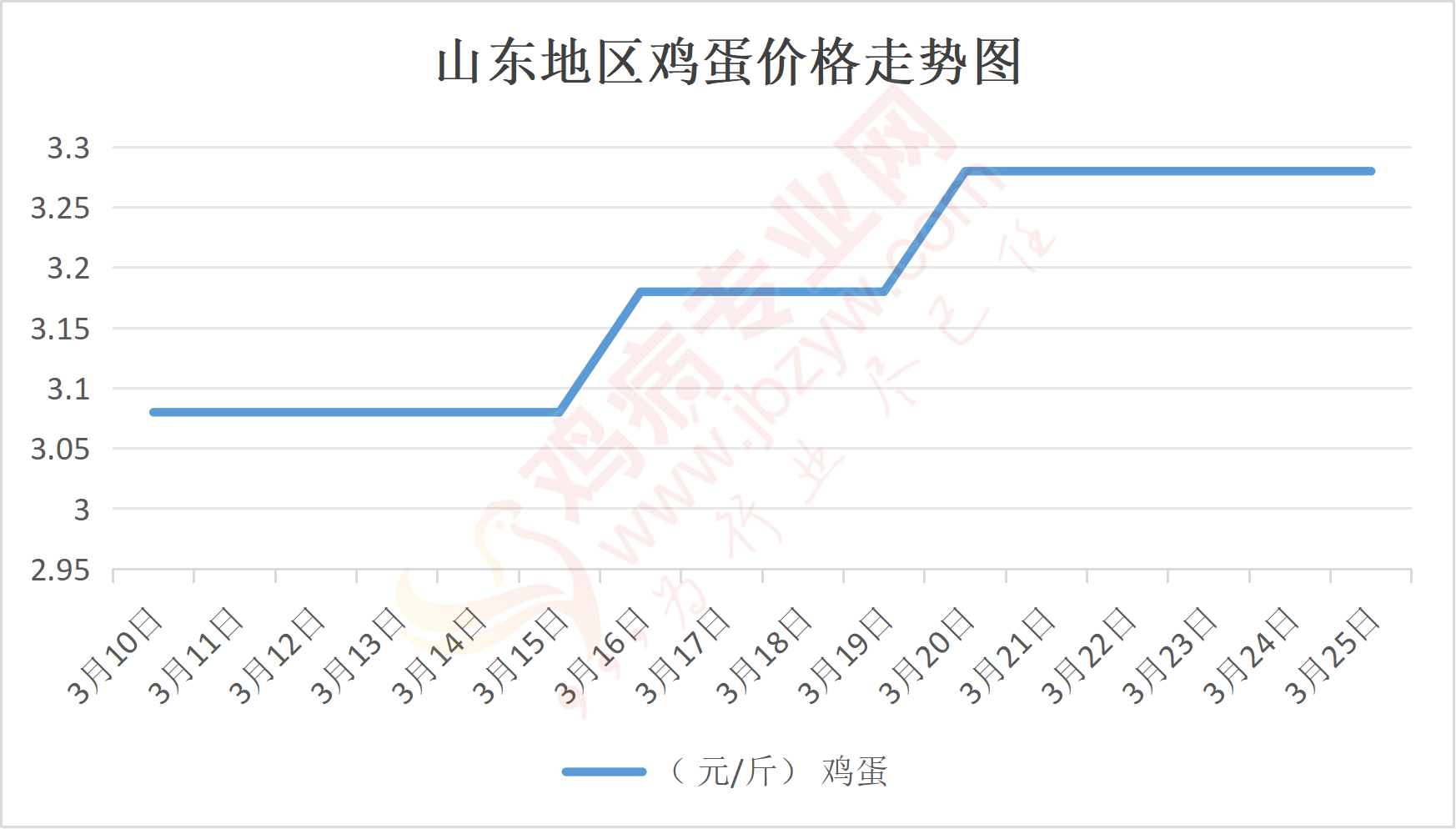 鸡病专业网消息:3月25日,山东地区莱阳鸡蛋3.3元/斤,稳;青岛鸡蛋3.3元/斤,稳;诸城鸡蛋3.35元/斤,稳;安丘鸡蛋3.2元/斤,稳;昌乐鸡蛋3.2元/斤,稳;寿光鸡蛋3.2元/斤,稳;昌邑鸡蛋3.2元/斤,稳;高密鸡蛋3.35元/斤,稳;青州鸡蛋3.2元/斤,稳;临朐鸡蛋3.2元/斤,稳;莱州鸡蛋3.3元/斤,稳;威海鸡蛋3.3元/斤,稳;临沭鸡蛋3.2元/斤,稳;沂水鸡蛋3.2元/斤,稳;沂南鸡蛋3.2元/斤,稳;莒南鸡蛋3.2元/斤,稳;兰陵县鸡蛋3.2元/斤,稳;日照鸡蛋3.2元/斤,稳;莒县鸡蛋3.2元/斤,稳;日照辛萁商贸鸡蛋3.2元/斤,稳;泗水鸡蛋价格96元/30斤,稳;济宁、汶上鸡蛋价格96元/30斤,稳;梁山、东平红蛋价格96元/30斤,稳;枣庄滕州地区鸡蛋混码主流到户97元/30斤,稳;泰安地区新泰鸡蛋价格96元/30斤,稳;菏泽地区曹县主流到户96元/30斤,稳;成武鸡蛋价格96元/30斤,稳;单县到户96元/30斤,稳;聊城莘县95元/30斤,稳;莱芜鸡蛋144元/45斤,稳;济南鸡蛋144元/45斤,稳;德州鸡蛋126元/40斤,稳;滨州鸡蛋126元/40斤,稳。
