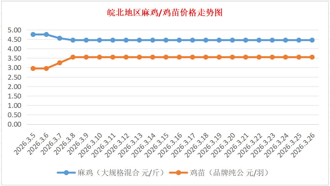 鸡病专业网独家信息:2026年3月26日皖北地区817-麻鸡行情最新走势