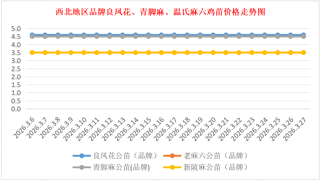 品牌新陂麻:价格稳定,到户价公苗4.50元/羽,稳。
