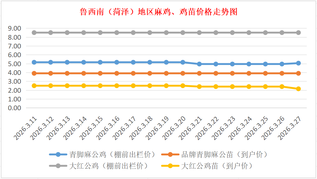 3月27日鲁西南(菏泽)地区麻鸡、鸡苗价格行情