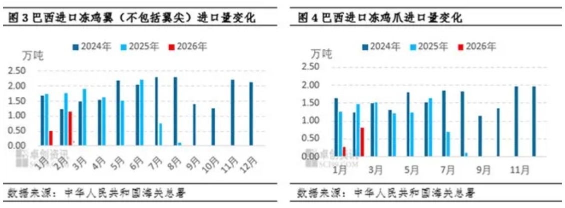 1-2月巴西进口鸡副进口量同比降幅仍超50%