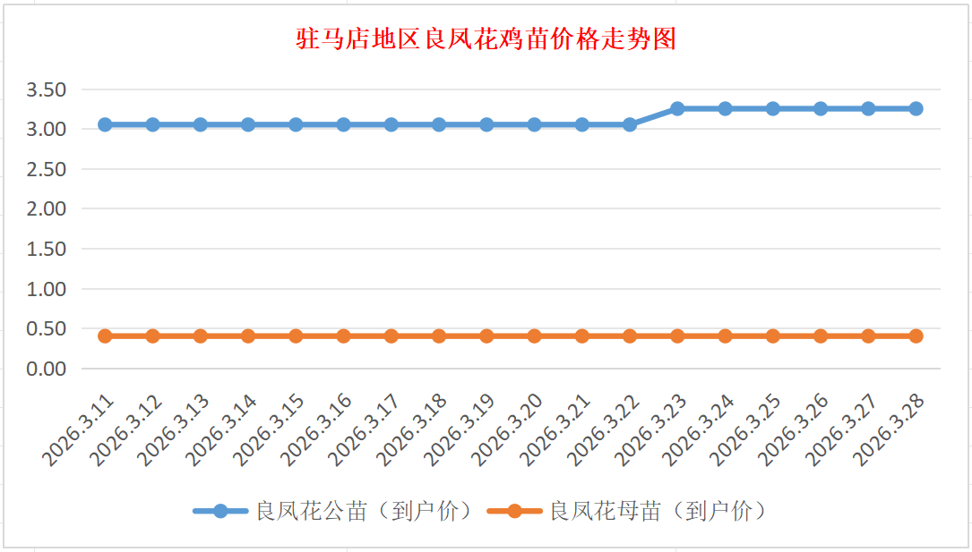 良凤花鸡苗:价格稳定,公苗到户价3.00-3.50元/羽,母苗到户价0.30-0.50元/羽,稳。
