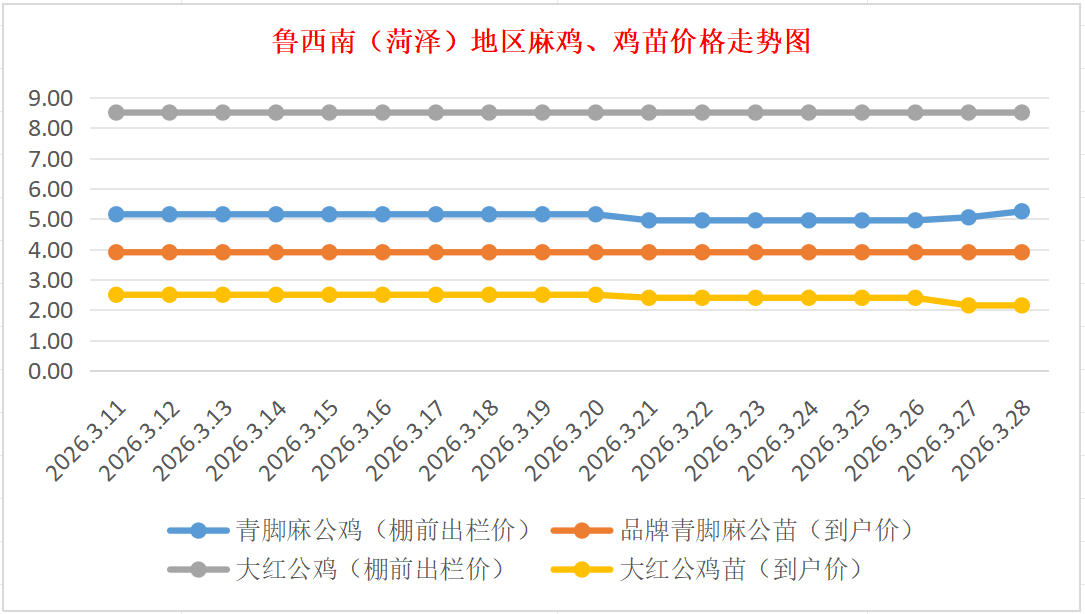 3月28日鲁西南(菏泽)地区麻鸡、鸡苗价格行情