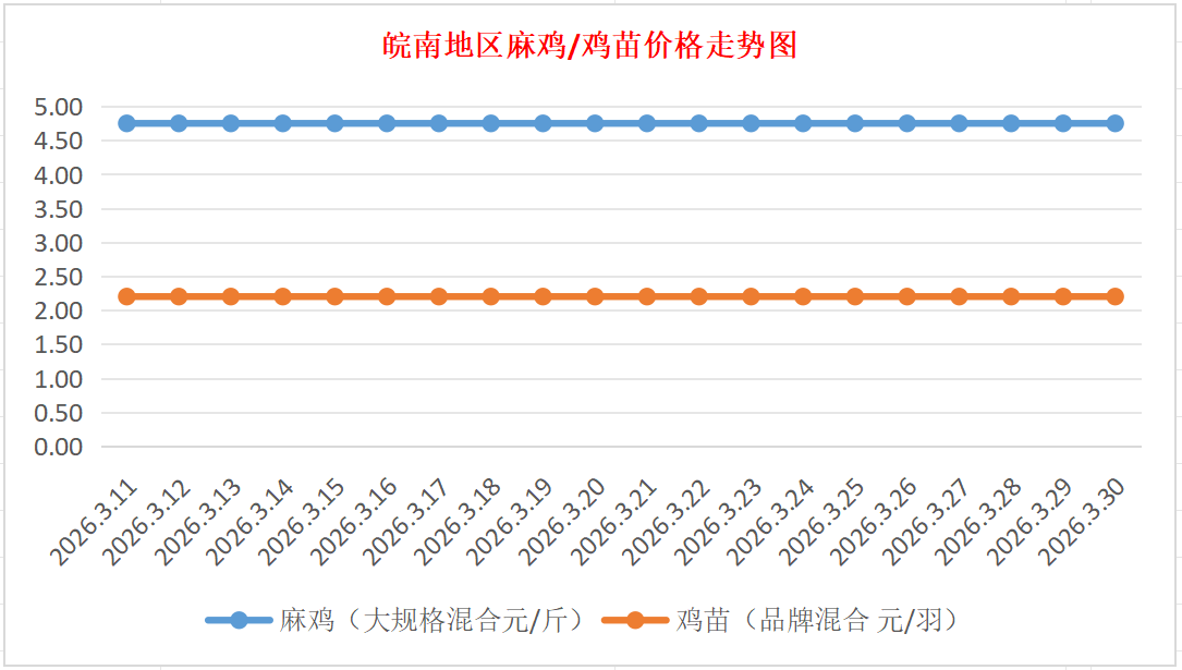 鸡病专业网独家信息:2026年3月30日皖南地区817-麻鸡行情最新走势