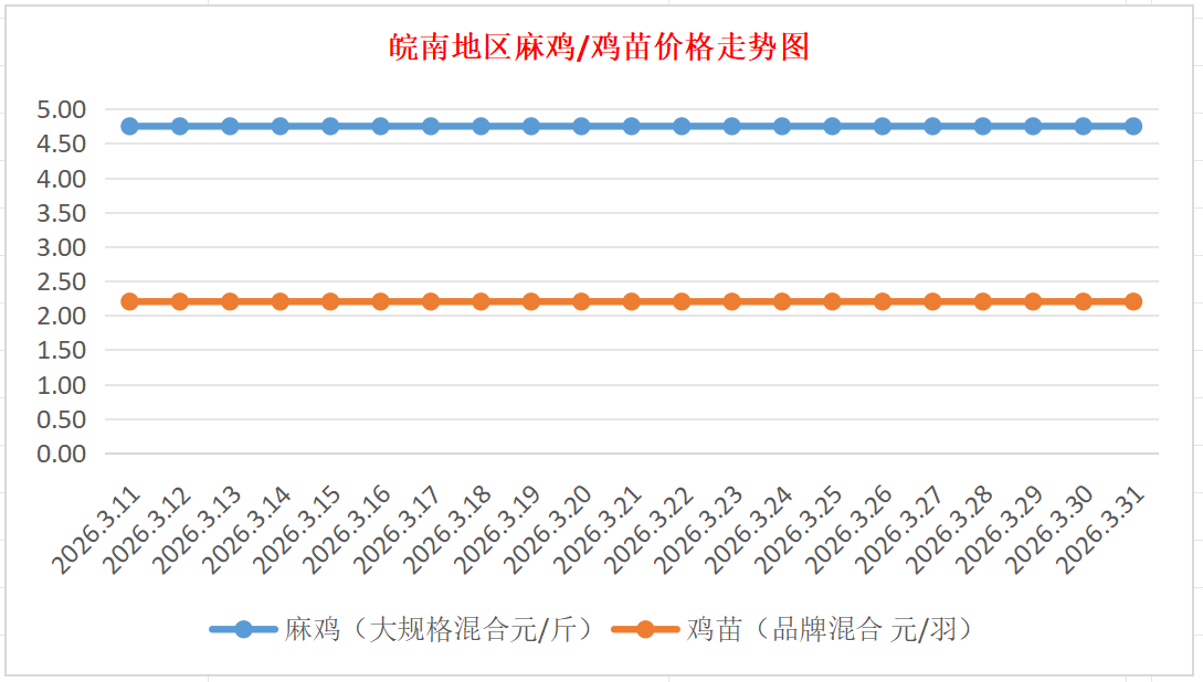 鸡病专业网独家信息:2026年3月31日皖南地区817-麻鸡行情最新走势