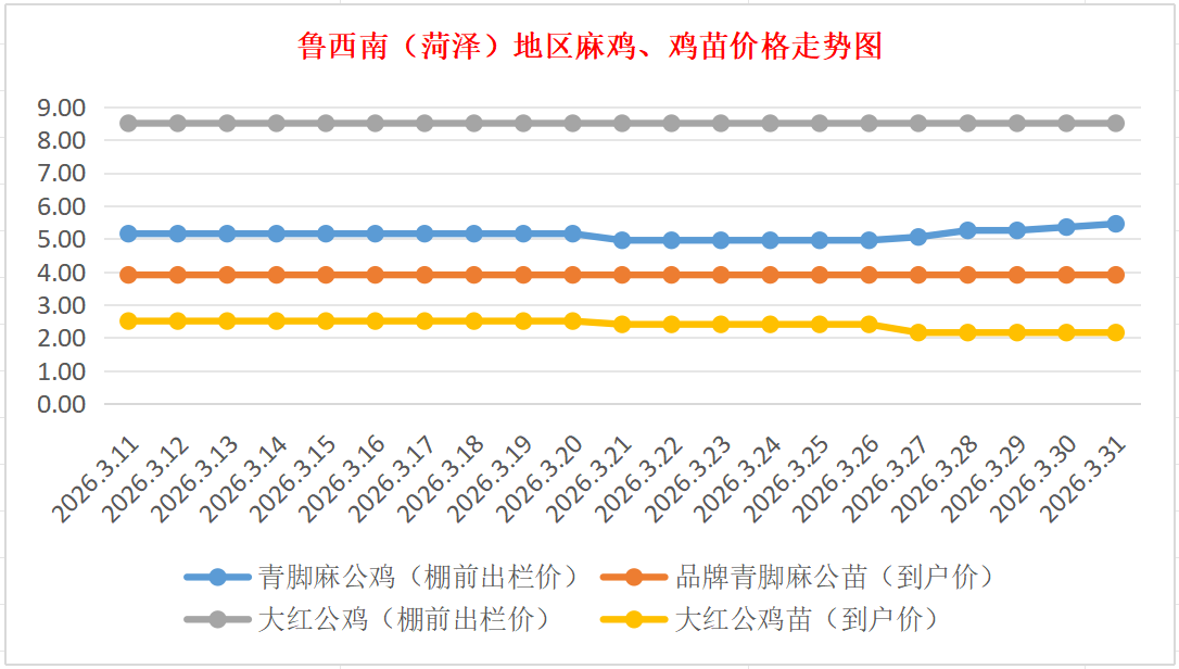 3月31日鲁西南(菏泽)地区麻鸡、鸡苗价格行情
