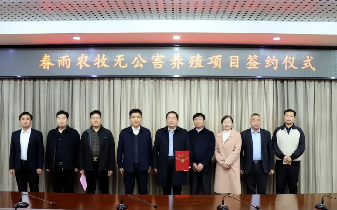 本次签约的春雨农牧无公害养殖基地项目,核心为羊庄镇中顶山养殖场建设项目,拟投资1.2亿元,将打造设备先进、管理智能、生产环保的现代化无公害养殖基地,规划肉鸡存栏100万只,项目达产后年出栏肉鸡700万只,年产值可达1.5亿元。