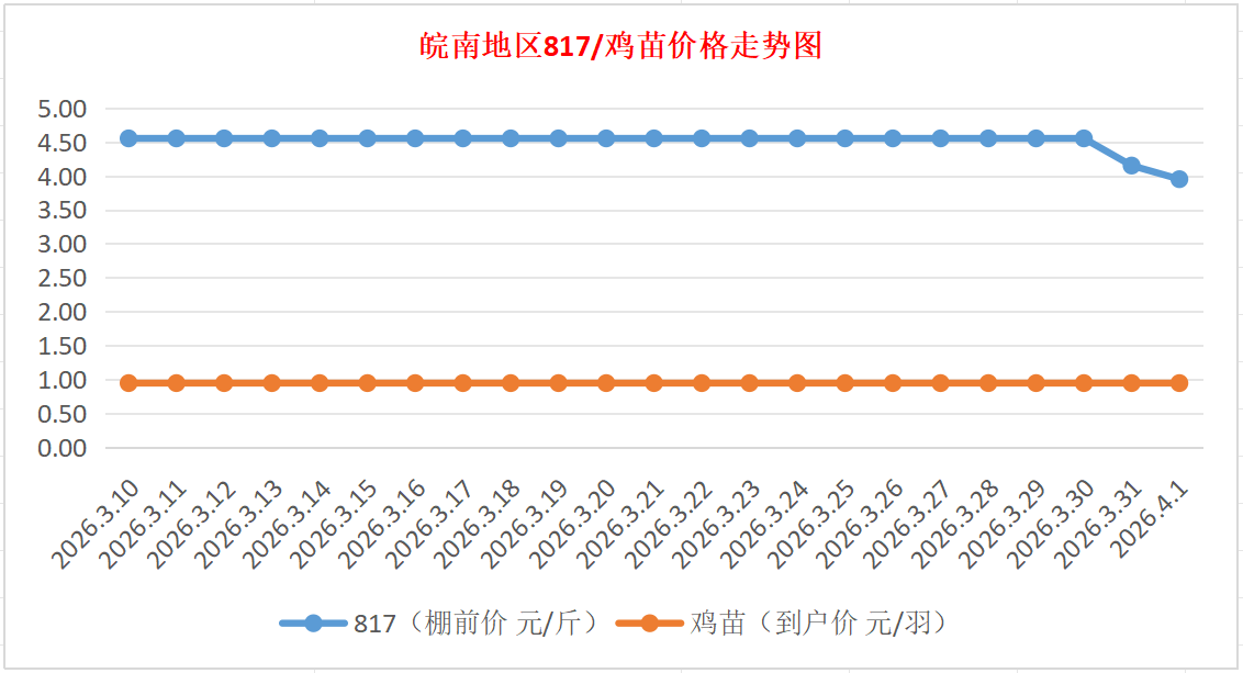 鸡病专业网独家信息:2026年4月1日皖南地区817-麻鸡行情最新走势