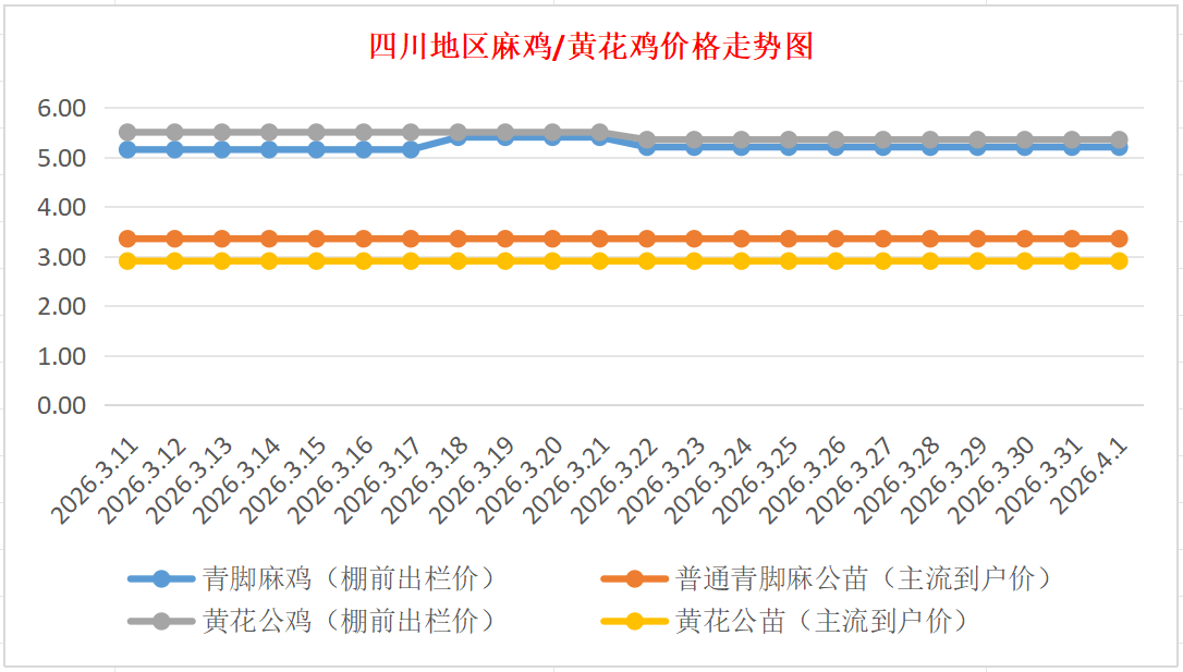 普通青脚麻公苗:价格稳定,主流到户价3.20-3.50元/羽,稳。
