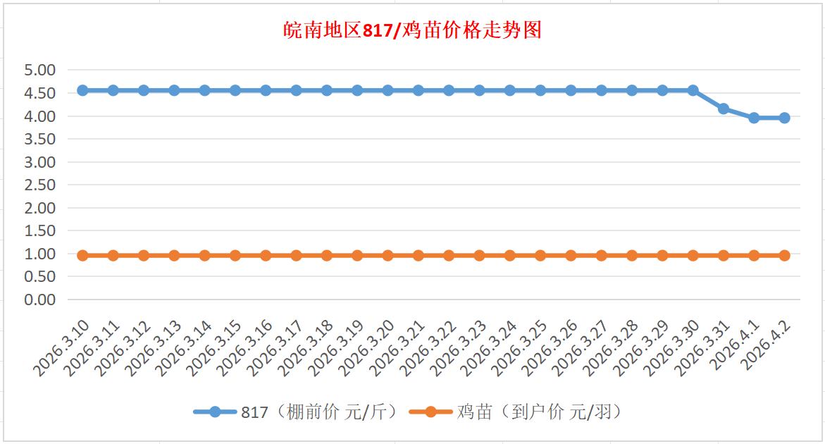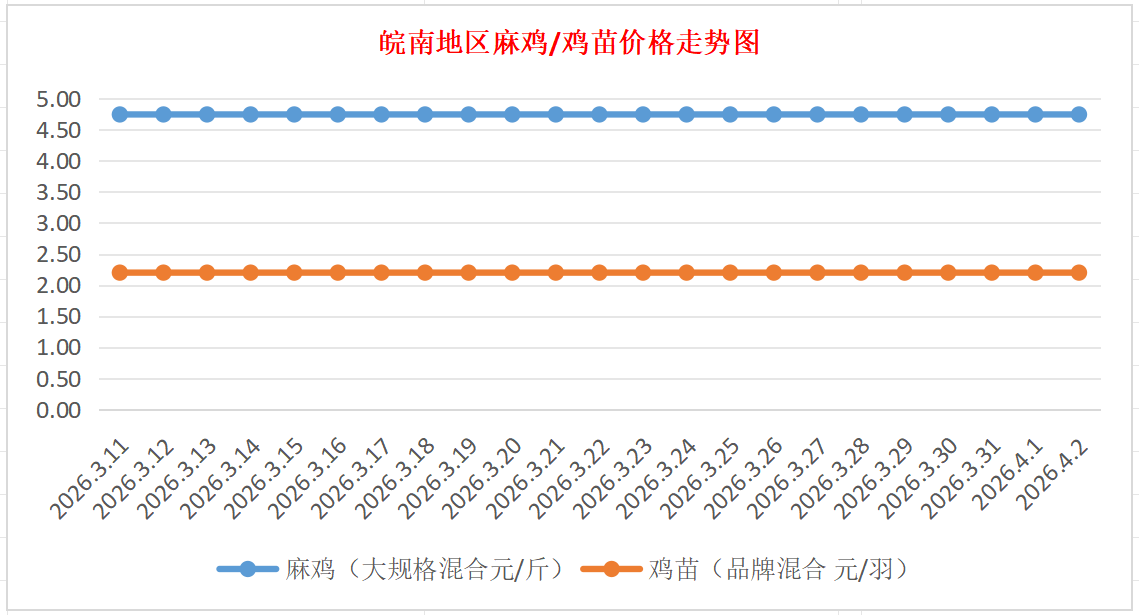 鸡病专业网独家信息:2026年4月2日皖南地区817-麻鸡行情最新走势