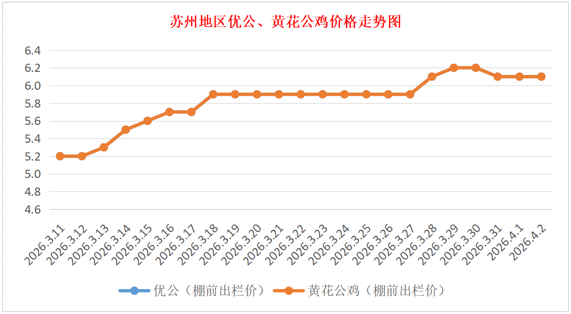 4月2日江苏(苏州)优公、黄花公鸡价格行情