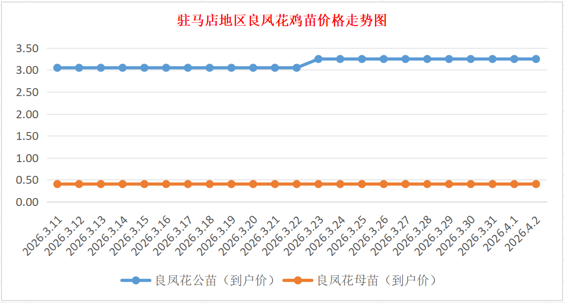 良凤花鸡苗:价格稳定,公苗到户价3.00-3.50元/羽,母苗到户价0.30-0.50元/羽,稳。