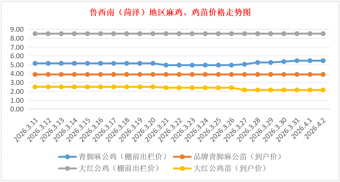 4月2日鲁西南(菏泽)地区麻鸡、鸡苗价格行情