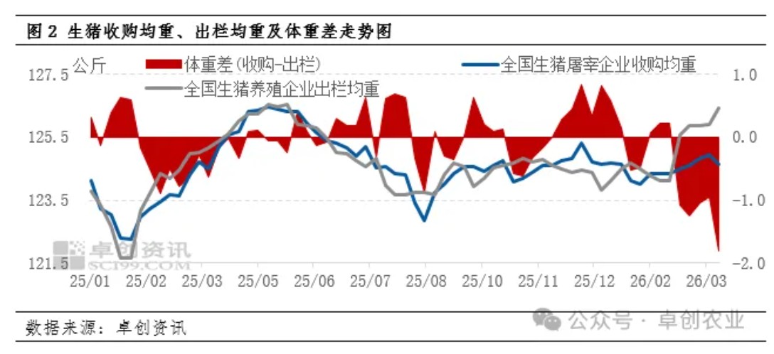 【导语】3月大猪持续保持较大出栏压力,终端屠宰虽有增量,但大猪消化压力仍大,且从收购均重与出栏均重测算体重差长期处于高位。4月随着宰量小幅度提升,市场消化或略加速,但大猪消化预期不足,养殖端或面临被动减重风险。