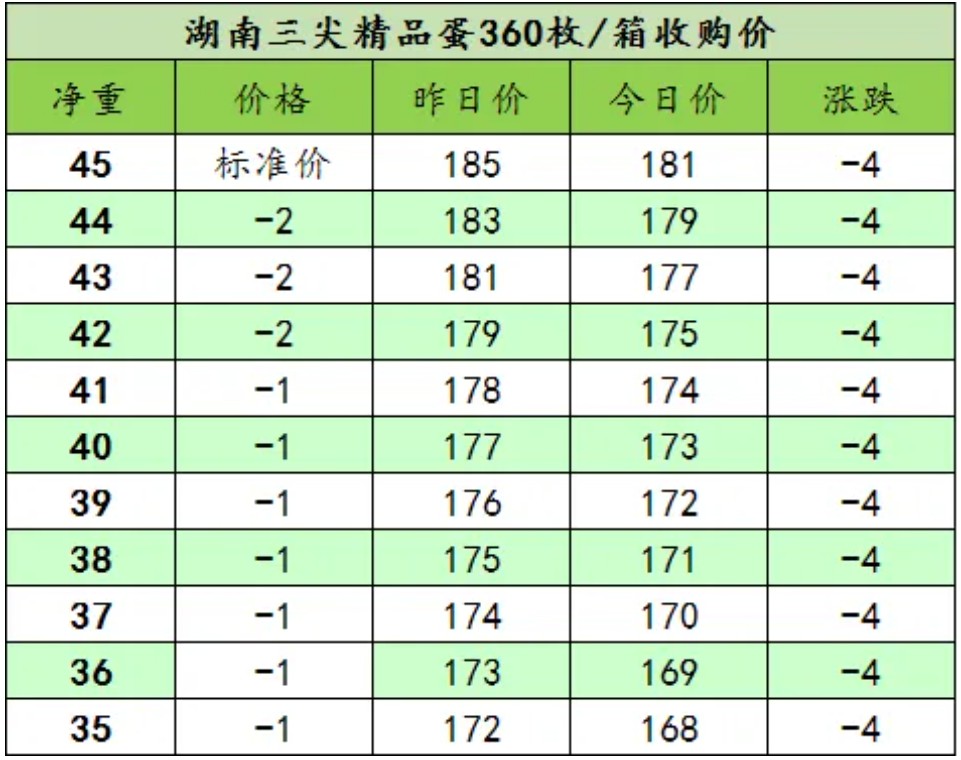 多重因素影响下,各地贸易商操作愈发谨慎,普遍持观望心态,按需少量拿货,整体走货缓慢,全国蛋价同步走低。顺应全国市场下行趋势,结合自身库存与走货情况,我司今日价格下调4元,加快货源流通,降低市场风险。