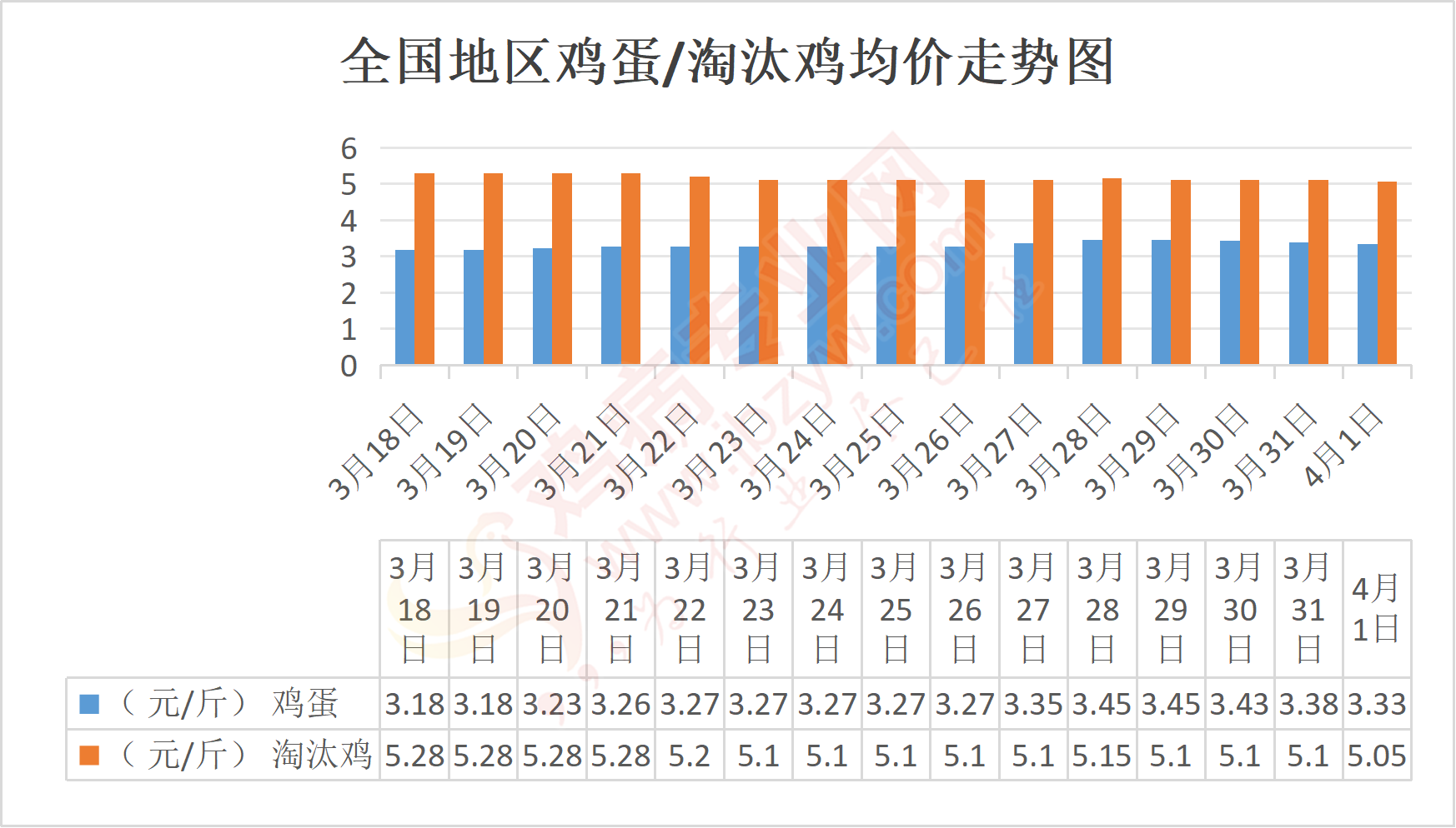 4月1日我国部分地区鸡蛋、淘汰鸡价格汇总