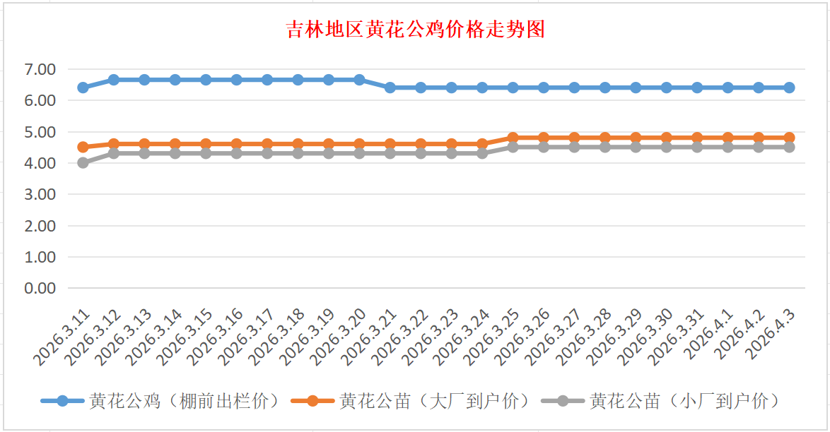 4月3日吉林黄花公鸡、鸡苗价格行情