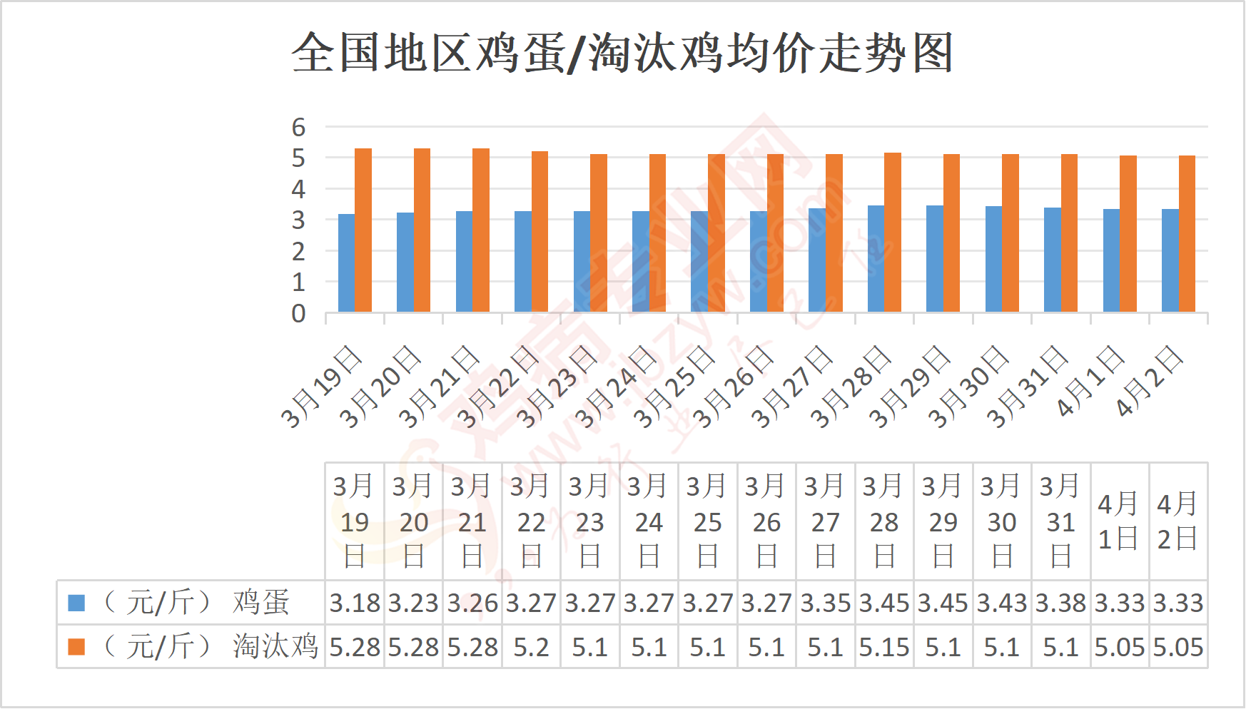 4月2日我国部分地区鸡蛋、淘汰鸡价格汇总