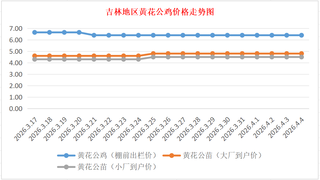 4月4日吉林黄花公鸡、鸡苗价格行情