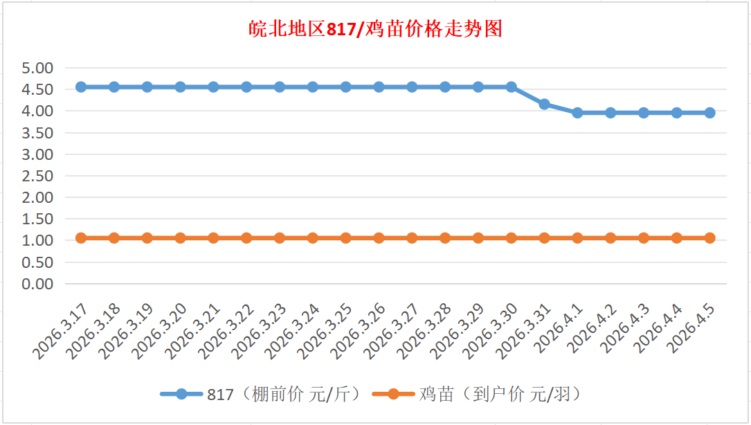 鸡病专业网独家信息:2026年4月5日皖北地区817-麻鸡行情最新走势