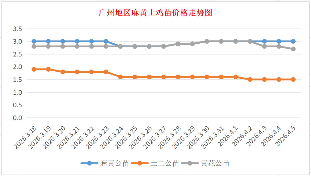 4月5日广州地区麻、黄、土鸡苗价格行情