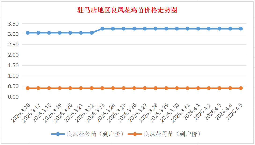 良凤花鸡苗:价格稳定,公苗到户价3.00-3.50元/羽,母苗到户价0.30-0.50元/羽,稳。