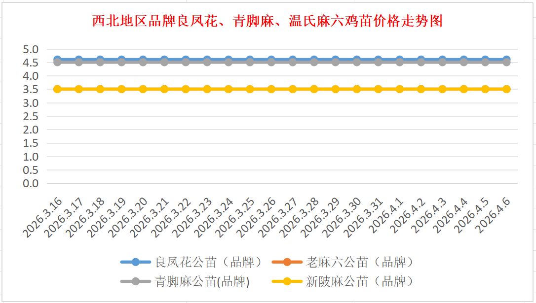 品牌新陂麻:价格稳定,到户价公苗4.50元/羽,稳。
