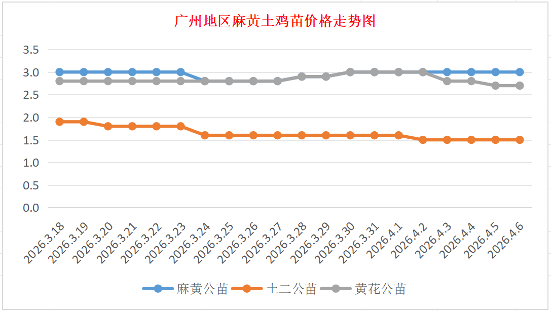 4月6日广州地区麻、黄、土鸡苗价格行情