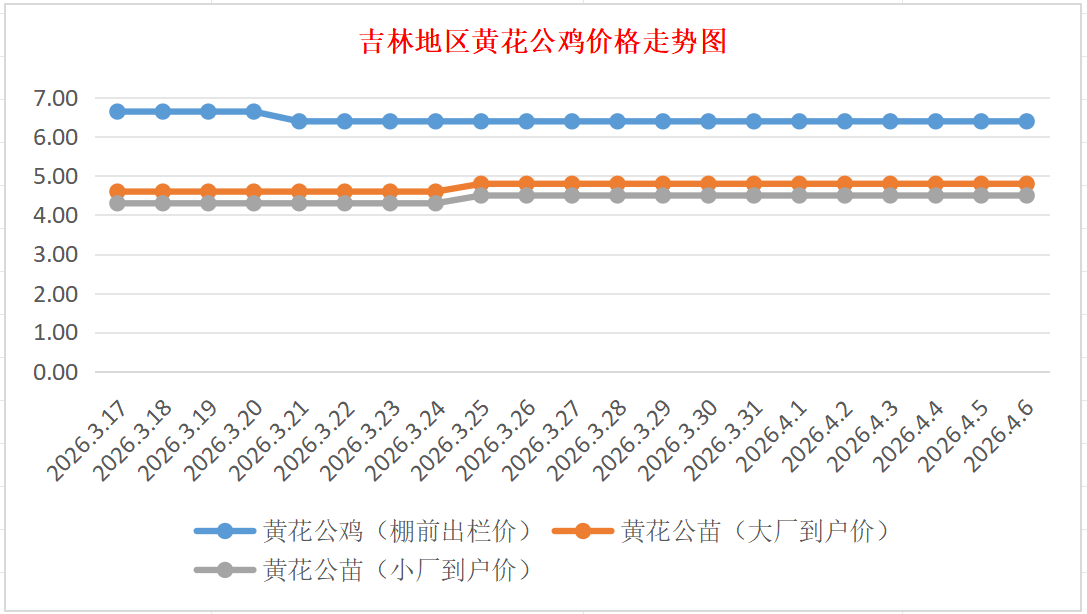 4月6日吉林黄花公鸡、鸡苗价格行情