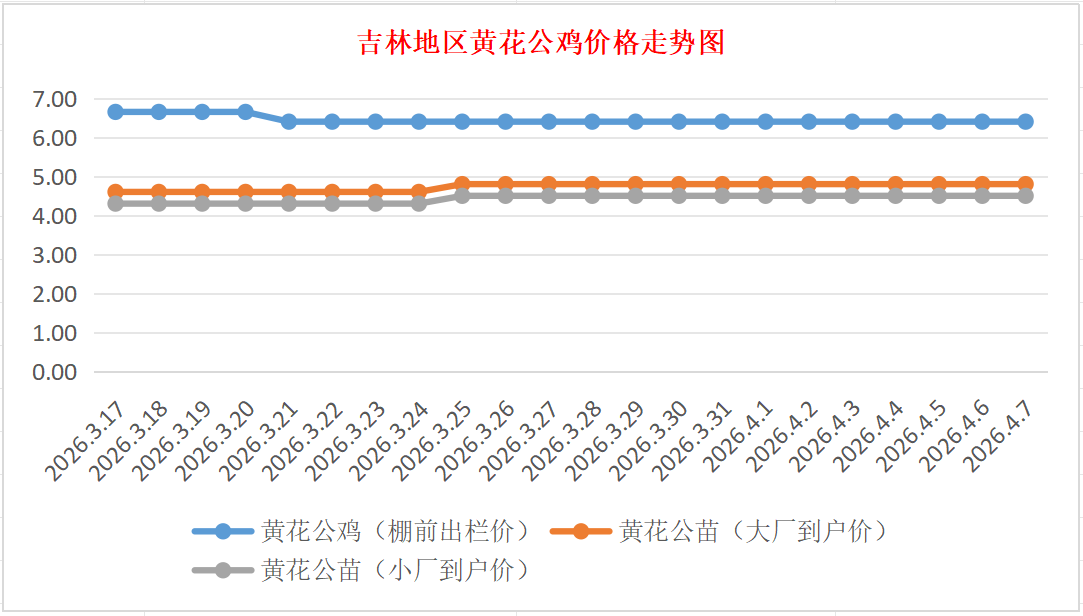 4月7日吉林黄花公鸡、鸡苗价格行情