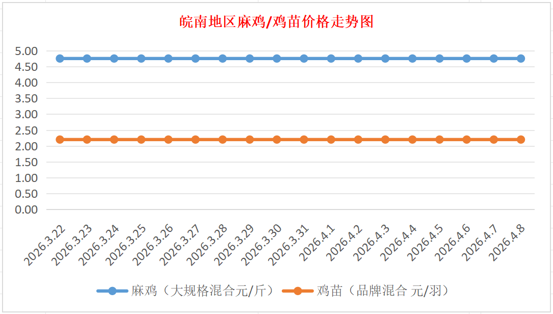 鸡病专业网独家信息:2026年4月8日皖南地区817-麻鸡行情最新走势