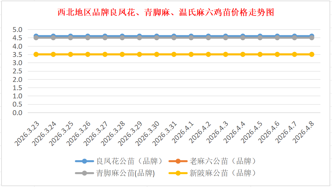 品牌新陂麻:价格稳定,到户价公苗4.50元/羽,稳。