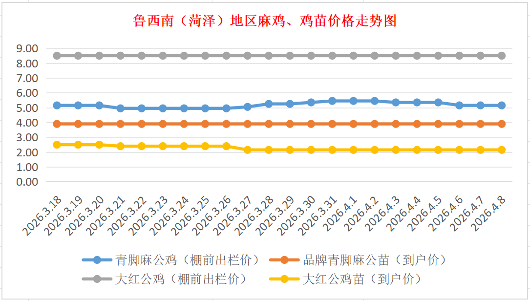 4月8日鲁西南(菏泽)地区麻鸡、鸡苗价格行情