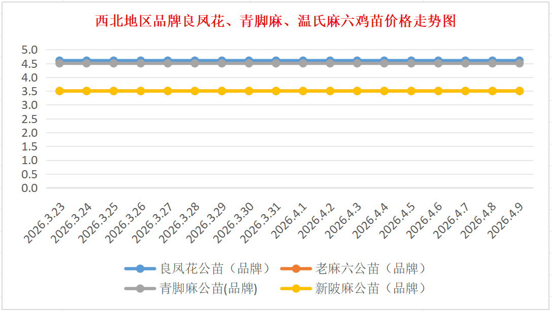 品牌新陂麻:价格稳定,到户价公苗4.50元/羽,稳。