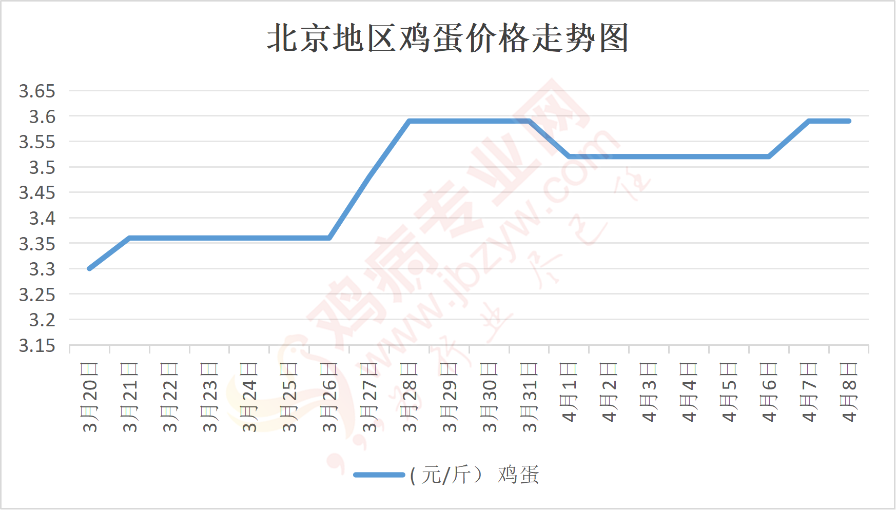 鸡病专业网消息:4月8日,北京各大市场鸡蛋价格稳定,主流参考价158元/44斤,石门,新发地、回龙观等主流批发价158元/44斤,稳;大洋路鸡蛋主流批发价格158元/44斤,稳,按质高低价均有,到车5台,走货一般。