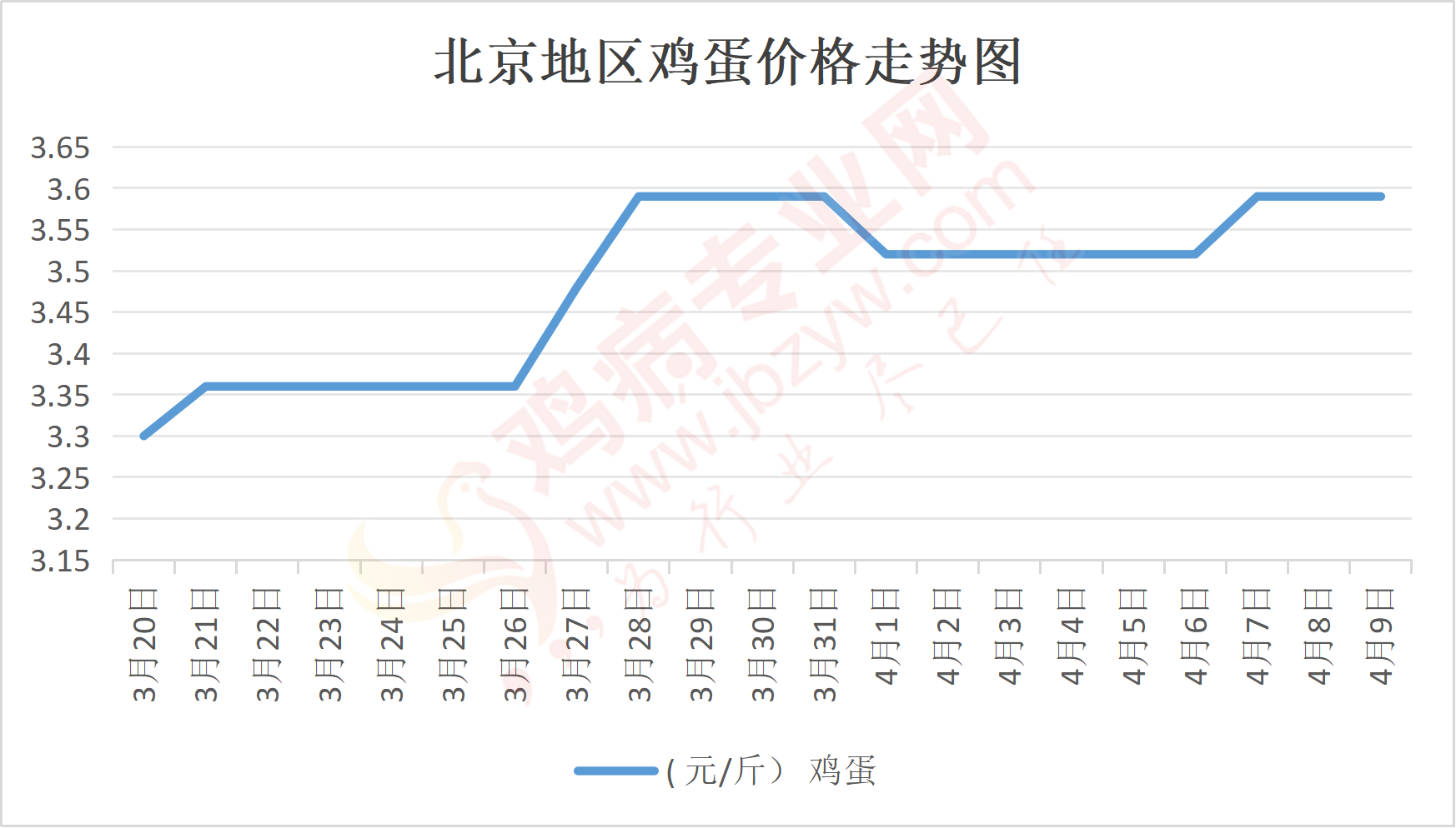 鸡病专业网消息:4月9日,北京各大市场鸡蛋价格稳定,主流参考价158元/44斤,石门,新发地、回龙观等主流批发价158元/44斤,稳;大洋路鸡蛋主流批发价格158元/44斤,稳,按质高低价均有,到车2台,走货一般。