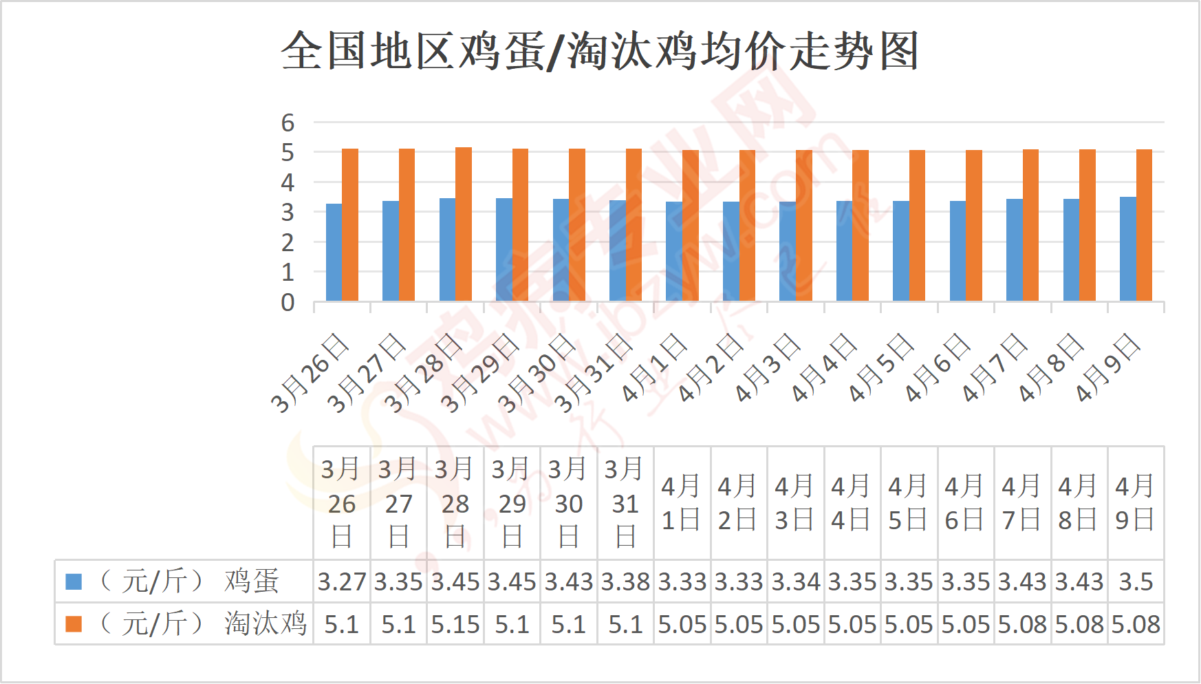4月9日我国部分地区鸡蛋、淘汰鸡价格汇总