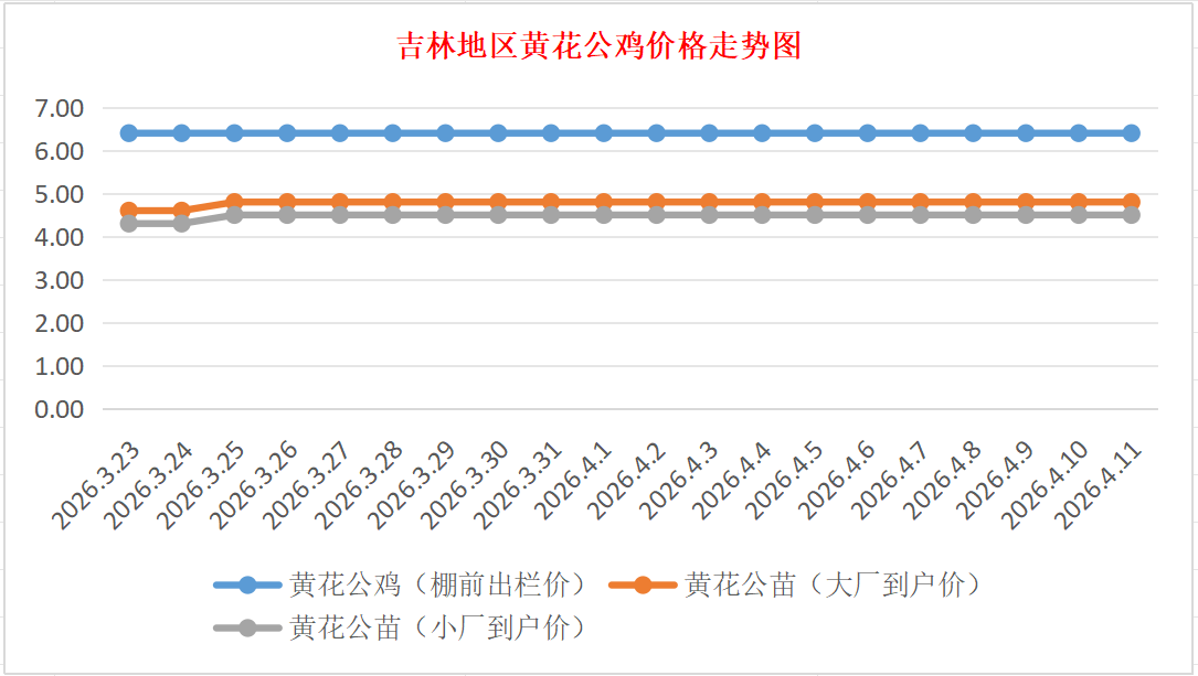 4月11日吉林黄花公鸡、鸡苗价格行情