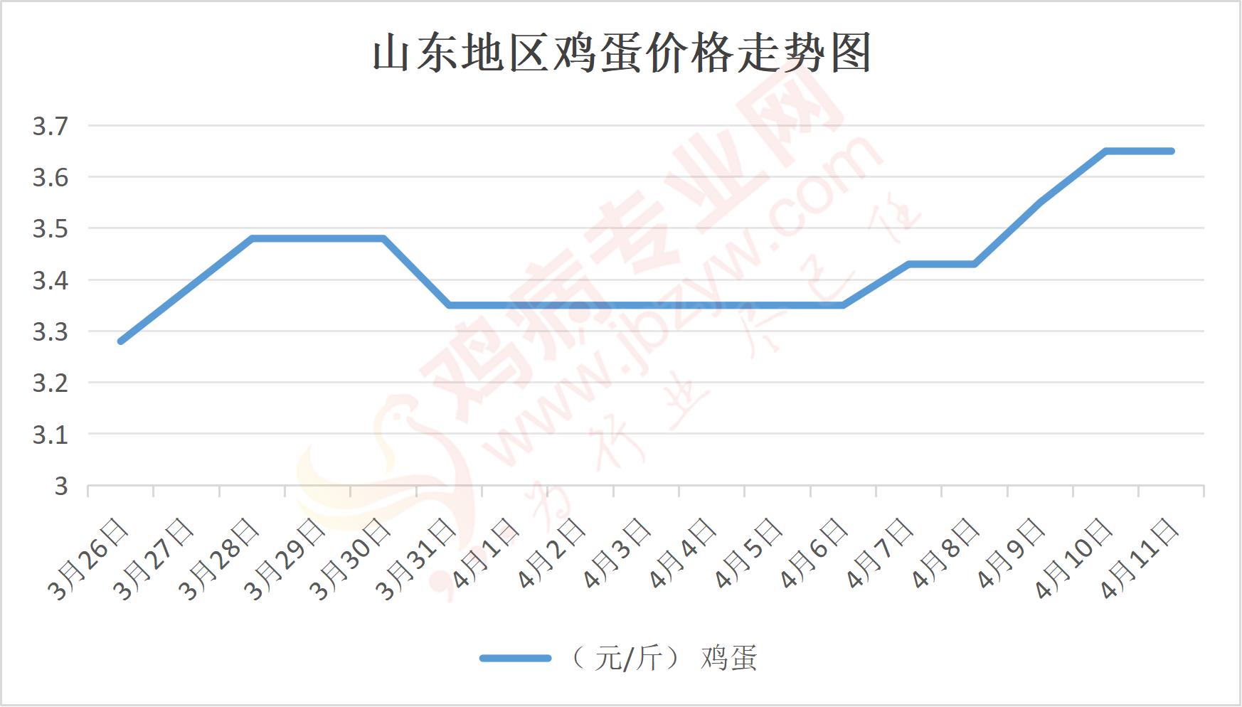 鸡病专业网消息:4月11日,山东地区莱阳鸡蛋3.7元/斤,稳;青岛鸡蛋3.7元/斤,稳;诸城鸡蛋3.65元/斤,稳;安丘鸡蛋3.6元/斤,稳;昌乐鸡蛋3.6元/斤,稳;寿光鸡蛋3.6元/斤,稳;昌邑鸡蛋3.6元/斤,稳;高密鸡蛋3.65元/斤,稳;青州鸡蛋3.6元/斤,稳;临朐鸡蛋3.6元/斤,稳;莱州鸡蛋3.7元/斤,稳;威海鸡蛋3.7元/斤,稳;临沭鸡蛋3.6元/斤,稳;沂水鸡蛋3.6元/斤,稳;沂南鸡蛋3.6元/斤,稳;莒南鸡蛋3.6元/斤,稳;兰陵县鸡蛋3.6元/斤,稳;日照鸡蛋3.6元/斤,稳;莒县鸡蛋3.6元/斤,稳;日照辛萁商贸鸡蛋3.6元/斤,稳;泗水鸡蛋价格108元/30斤,稳;济宁、汶上鸡蛋价格108元/30斤,稳;梁山、东平红蛋价格108元/30斤,稳;枣庄滕州地区鸡蛋混码主流到户109元/30斤,稳;泰安地区新泰鸡蛋价格108元/30斤,稳;菏泽地区曹县主流到户108元/30斤,稳;成武鸡蛋价格108元/30斤,稳;单县到户108元/30斤,稳;聊城莘县108元/30斤,稳;莱芜鸡蛋162元/45斤,稳;济南鸡蛋162元/45斤,稳;德州鸡蛋144元/40斤,稳;滨州鸡蛋144元/40斤,稳。