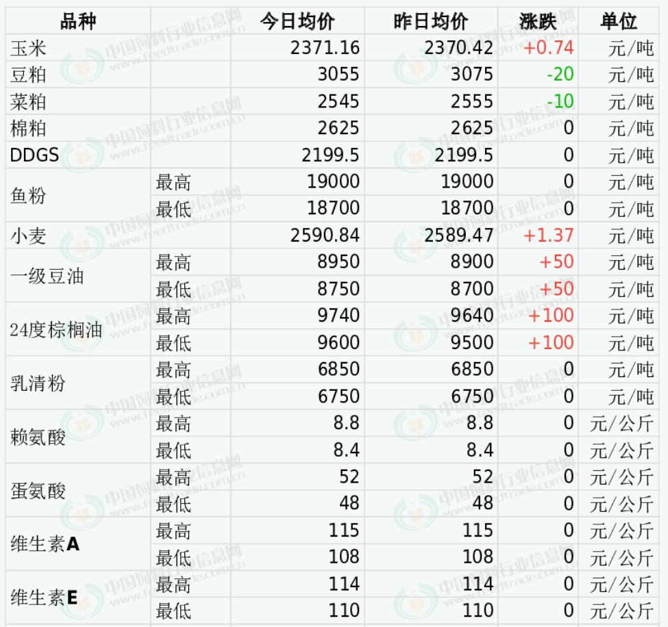 2026年4月10日国内饲料原料行情汇总