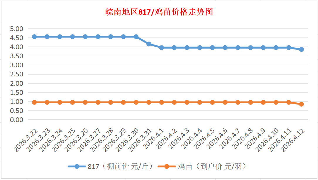 鸡病专业网独家信息:2026年4月12日皖南地区817-麻鸡行情最新走势