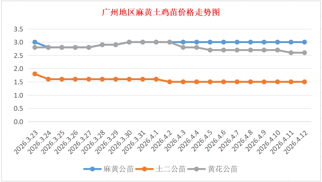 4月12日广州地区麻、黄、土鸡苗价格行情