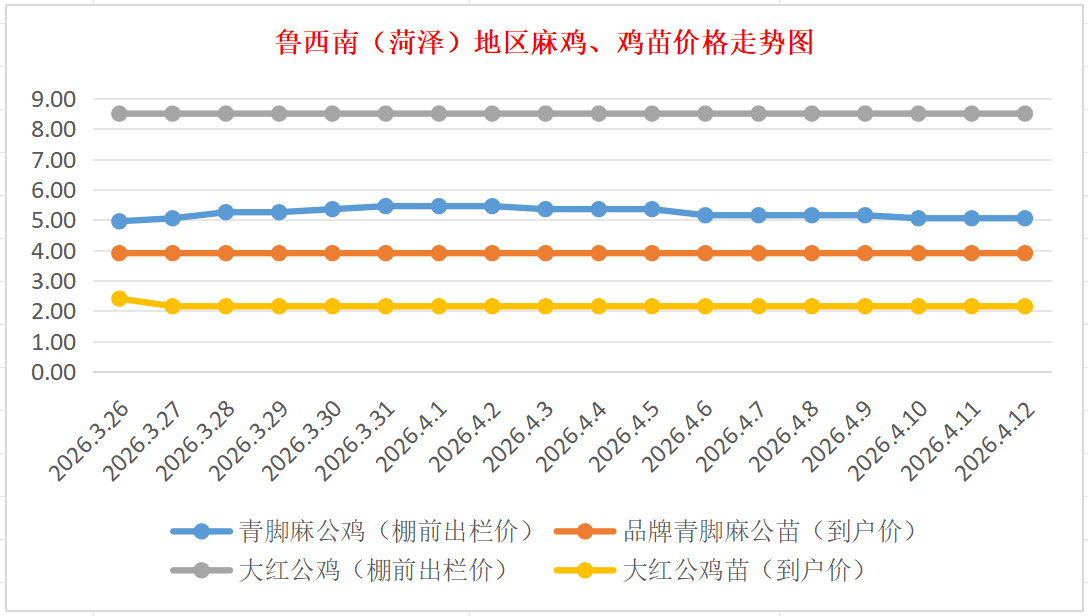 4月12日鲁西南(菏泽)地区麻鸡、鸡苗价格行情