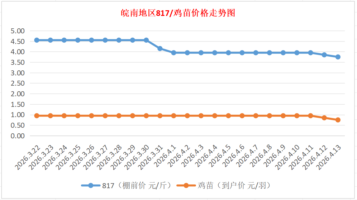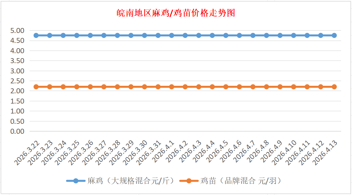 鸡病专业网独家信息:2026年4月13日皖南地区817-麻鸡行情最新走势