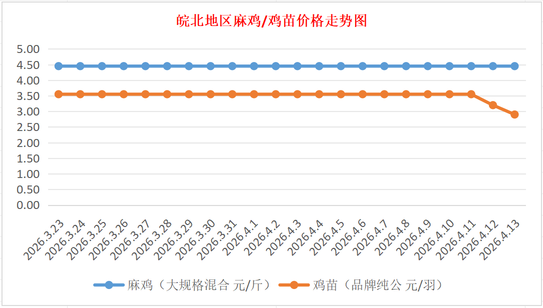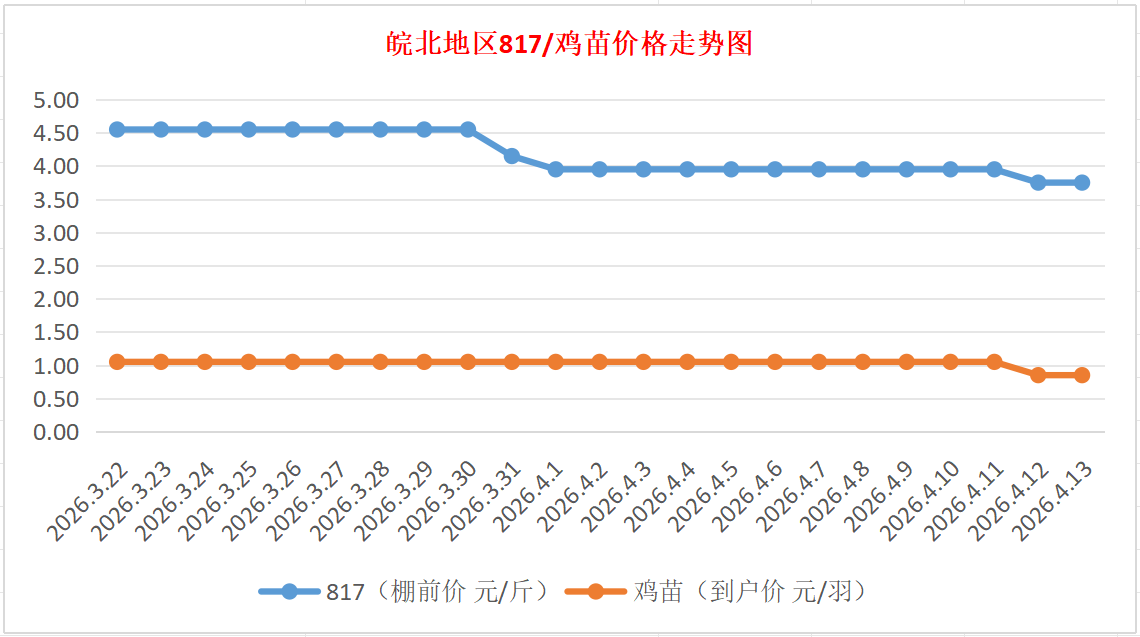 鸡病专业网独家信息:2026年4月13日皖北地区817-麻鸡行情最新走势