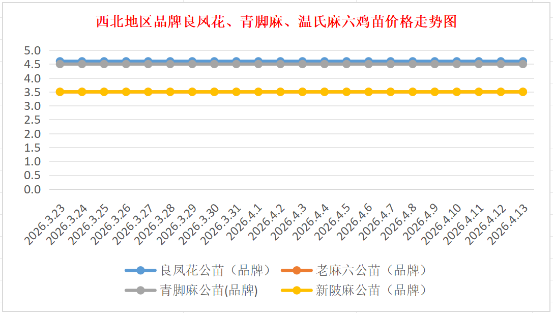 品牌新陂麻:价格稳定,到户价公苗4.50元/羽,稳。