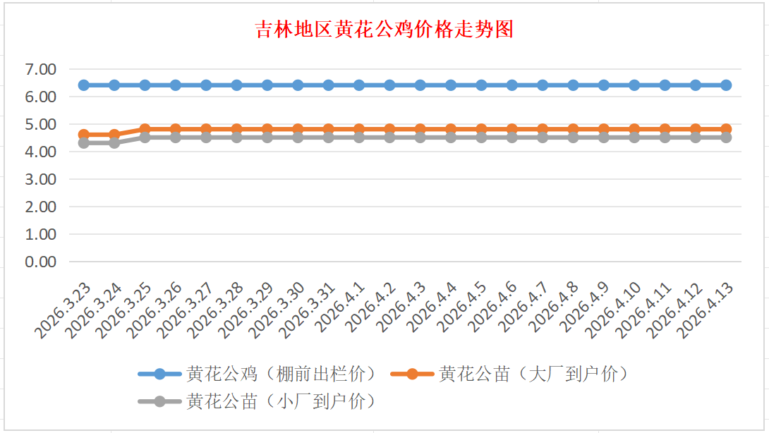 4月13日吉林黄花公鸡、鸡苗价格行情