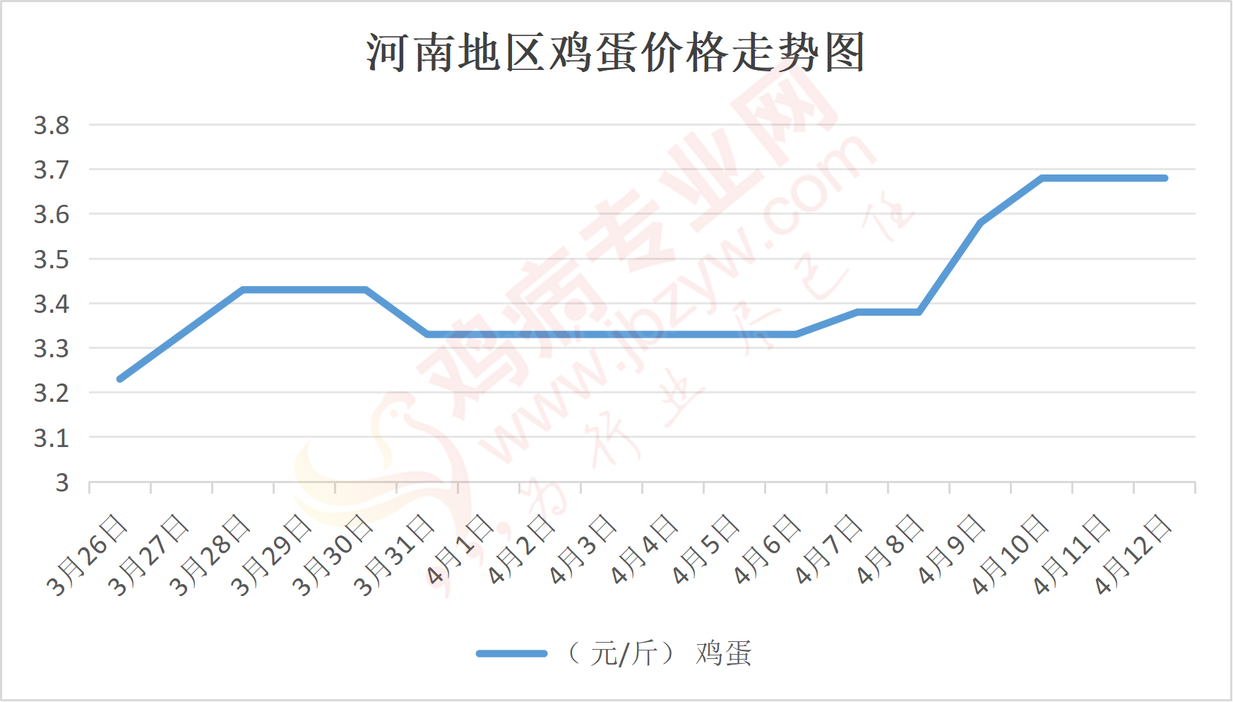 鸡病专业网消息:4月12日,河南郑州鸡蛋3.7元/斤,稳;新密鸡蛋3.7元/斤,稳;荥阳鸡蛋3.7元/斤,稳;中牟鸡蛋3.7元/斤,稳;周口鸡蛋3.65元/斤,稳;商丘鸡蛋109元/30斤,稳;鹤壁鸡蛋3.7元/斤,稳;汝州鸡蛋3.65元/斤,稳;开封鸡蛋109元/30斤,稳;漯河鸡蛋3.65元/斤,稳;漯河临颍鸡蛋3.65元/斤,稳;许昌鸡蛋3.65元/斤,稳;南阳鸡蛋3.65元/斤,稳;南阳邓州鸡蛋3.65元/斤,稳;新乡鸡蛋3.65元/斤,稳;安阳鸡蛋3.65元/斤,稳;新郑鸡蛋3.7元/斤,稳;登封鸡蛋3.7元/斤,稳;平顶山鸡蛋3.65元/斤,稳;驻马店鸡蛋3.65元/斤,稳;三门峡鸡蛋3.65元/斤,稳;焦作鸡蛋3.65元/斤,稳;信阳鸡蛋3.65元/斤,稳;濮阳鸡蛋3.65元/斤,稳。