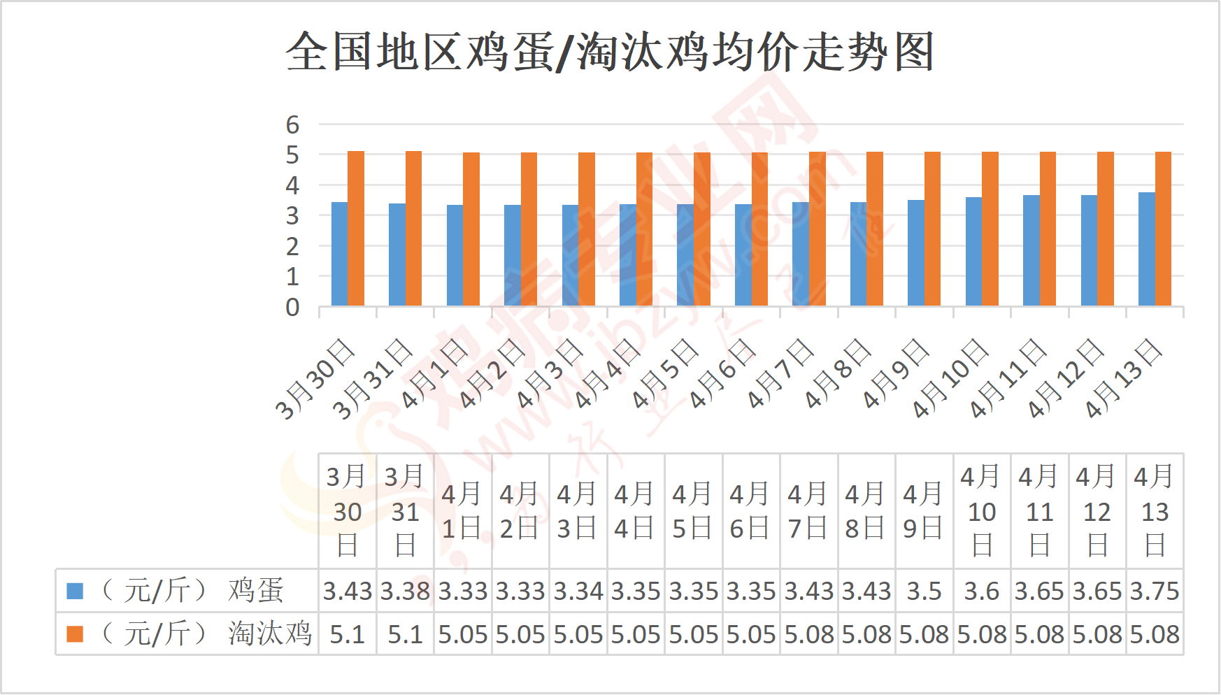 4月13日我国部分地区鸡蛋、淘汰鸡价格汇总